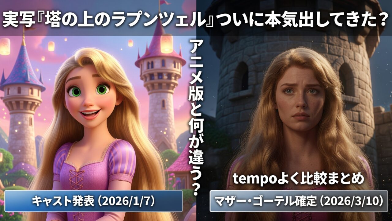 実写『塔の上のラプンツェル』ついに本気出してきた?キャスト発表(2026/1/7)&マザー・ゴーテル確定(2026/3/10)で「アニメ版と何が違う?」をテンポよく比較まとめ!